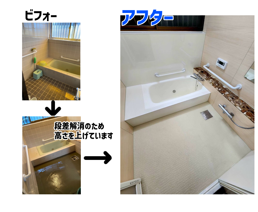 お風呂のリフォームをお考えの方に解体をせずユニットバスへ交換する方法をご提案いたします。解体や基礎工事が不要なので、一般的なリフォームより工期が短くなるため、お忙しい方にぴったりです。また、費用も大幅に抑えられることが大きな特徴です。絆HOME株式会社では浴室の床の高さを変更し、バリアフリーの対応も可能です。